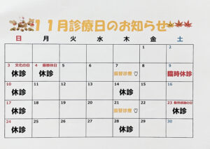 10月11月12月の診療日のご案内