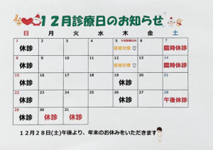 12月、令和8年1月の診療日のご案内