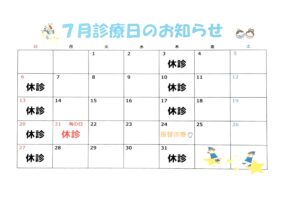 5・6・7月の診療日のお知らせです(^^)
